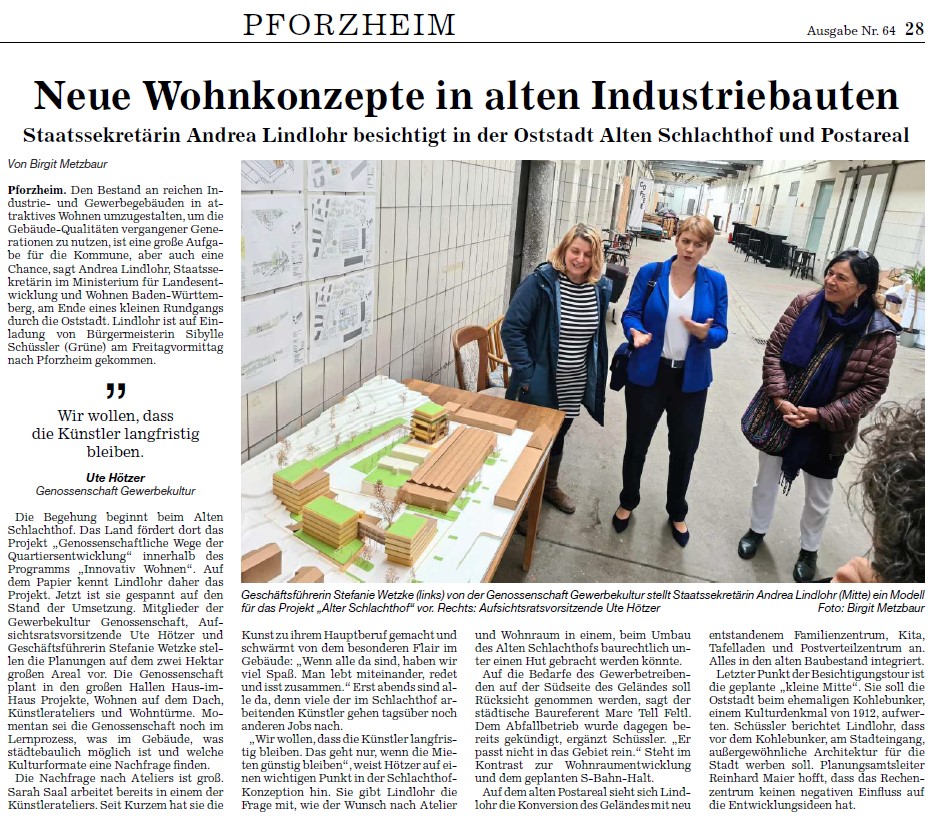 Andrea Lindlohr, State Secretary at the Ministry for Regional Development and Housing, visits the Existing building of the abattoir on her tour of the eastern city. Mrs Lindlohr confirms on site and in social media Your interest and the support of the country.