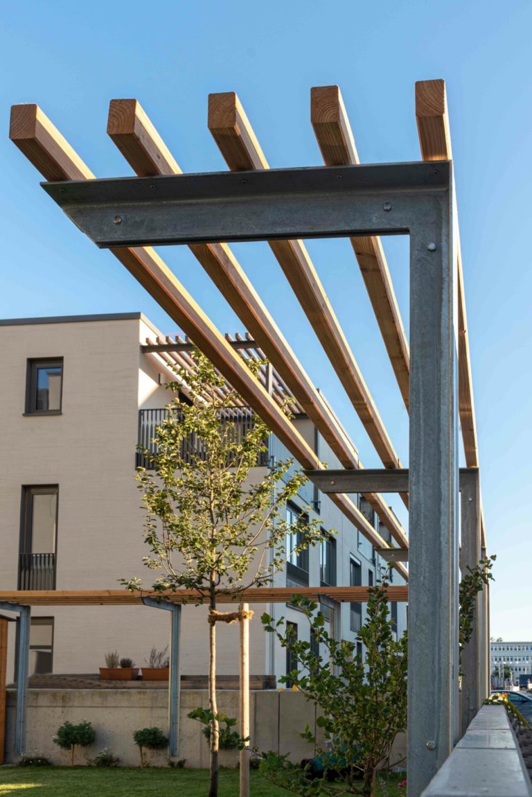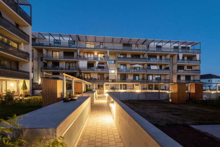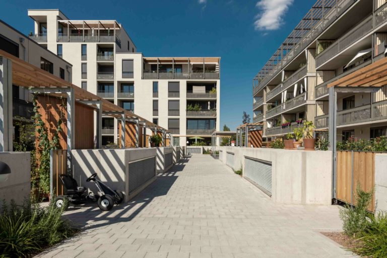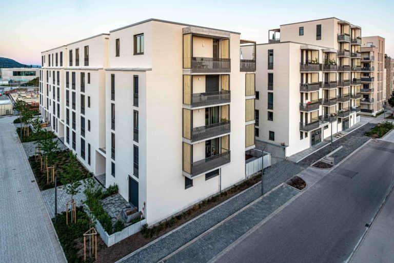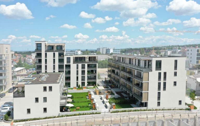 Desde octubre de 2017 se está llevando a cabo este proyecto con un total de 51 unidades residenciales en la zona de Bahnstadt, en Bruchsal. Una colorida mezcla de jóvenes y mayores, solteros y familias, propietarios y futuros arrendadores se han reunido en la parcela de 3.600 metros cuadrados en una ubicación céntrica para realizar un proyecto ecológico como grupo de construcción. El objetivo declarado era construir un edificio ecológico, energéticamente eficiente y sostenible en una ubicación céntrica. Una característica especial del proyecto de grupo de edificios es el alto grado de opciones de individualización dentro de los pisos, que se concedieron a cada cliente. En la fase inicial de planificación se decidió cómo minimizar los costes de mantenimiento y seguimiento para los futuros propietarios y residentes. Además del estándar energético KfW Efficiency House 55 con paredes exteriores de ladrillo y ventanas de madera-aluminio de bajo mantenimiento, también se acordó privatizar las instalaciones exteriores en la medida de lo posible y prescindir de los servicios de construcción de alto mantenimiento. Las reuniones mensuales entre el grupo de construcción, el equipo de planificación y el equipo de gestión del proyecto, en las que se debaten temas de actualidad y se acuerdan puntos importantes para el curso ulterior del proyecto, permiten a los clientes participar en el proceso de planificación.