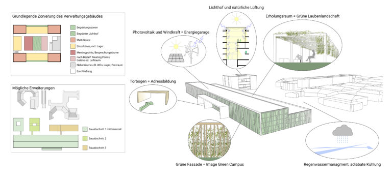 2. Ein tageslichtorientiertes, klimagerechtes Verwaltungsgebäude mit grünem Innenhof