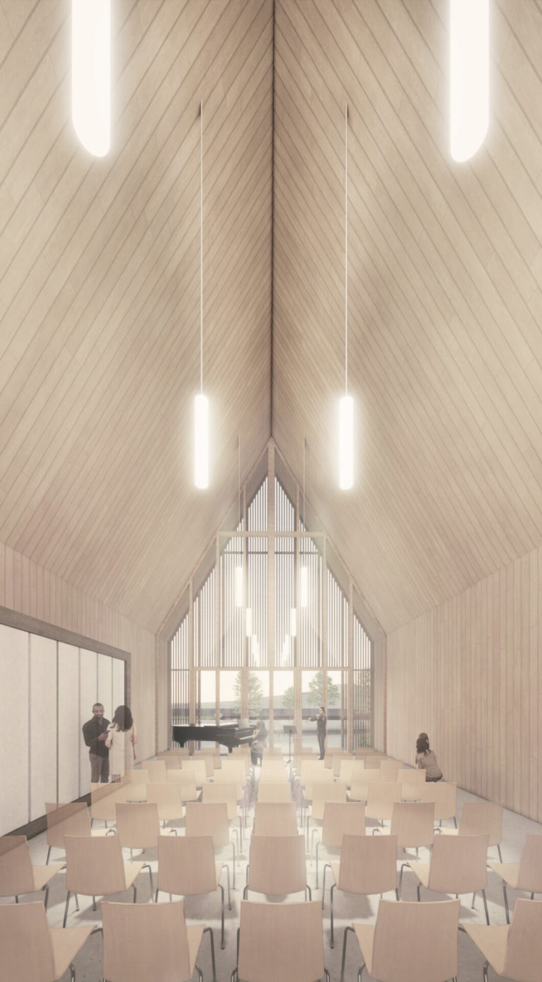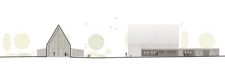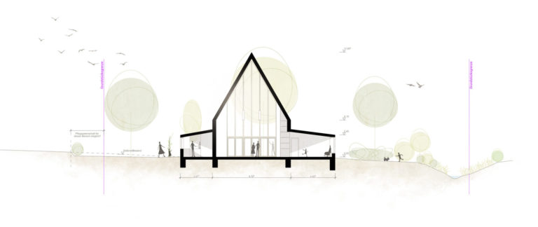 Der Entwurf spiegelt mit den beiden Archetypen Haus und Hof Elemente des Gemeindelebens – Offenheit, Zusammenkunft und Geborgenheit.