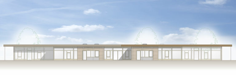 Die gestalterische Grundidee des Gebäudes entwickelt sich aus der Vorstellung, man habe über vier ausgebreitete Spieldecken eine transparente, schützende Hülle gestülpt. Innenraum und Außenraum verschmelzen, sodass der Bezug zur Landschaft und zur Natur überall gegeben ist. Das Gebäude ist in seiner Ästhetik reduziert. Die Oberflächen ergeben sich primär aus den verwendeten Materialien. Deren Optik, Haptik und Geruch sind gerade für Kinder wichtige Sinneserfahrungen. Im Inneren des Gebäudes gibt es für die vier Gruppen jeweils eigene, überschaubare Raumbereiche, die um eine belebte Mitte angeordnet wurden. Es wurde darauf geachtet, dass die Struktur eine sowohl horizontale als auch vertikale Erweiterung zulässt.