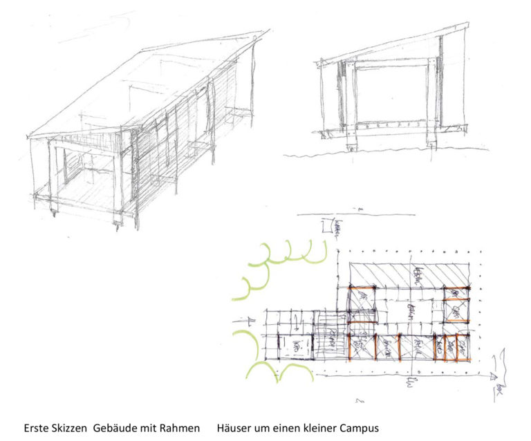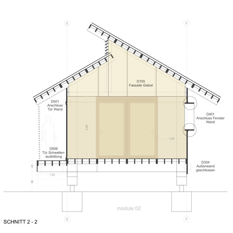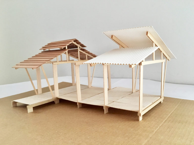 Unsere Aufgabe bestand darin aus Leichtholz-Mehrschichtplatten ein komplettes Bausystem zu entwickeln. Dieses soll einfach zu fügen und leicht zu transportieren sein. Es soll geeignet sein, die traditionelle Bauweise zeitgemäß und gestalterisch ansprechend zu adaptieren. Das Bausystem ist daher in tragende und raumbildende Elemente unterschieden und kann an unterschiedliche lokale Rahmenbedingungen angepasst werden.