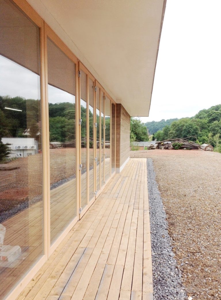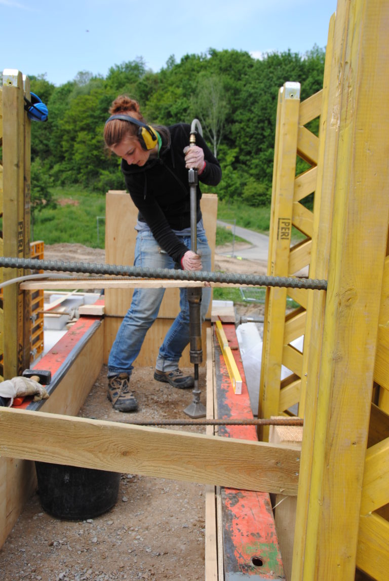 In Kooperation mit der Stadt Ludwigsburg und dem Verein der Bienenzüchter wurde unter Leitung von Professor Andreas Löffler an der Hochschule für Technik (HFT) in Stuttgart ein Praxis-und Lehrkonzept gestartet. Es hatte das Ziel auf dem Gelände des renaturierten Hungerberges, ein Gebäude für die Bienenzüchter und als Naturinformationszentrum mit höchsten Ansprüchen an Nachhaltigkeit für Architektur und Gebäudetechnik zu entwickeln. Das Gebäude besteht aus Stampflehm und Holz. Der optimierte Entwurf ermöglicht vorbildlich sowohl passiv als auch aktiv einfallende Solarenergie zu nutzen und ist mit einem Eisspeicher und Wärmepumpe für die Wärmeversorgung ausgestattet. Das Gebäude wurde in Eigenarbeit durch die Studenten der HFT und den Bienenzüchtern realisiert. Das Projekt kann hinsichtlich Gestaltung, Konstruktion und Nachhaltigkeit in vielerlei Hinsicht als vorbildlich eingestuft werden. Ein angeschlossenes Monitoring bestätigt in wissenschaftlich fundierter Weise diese These.